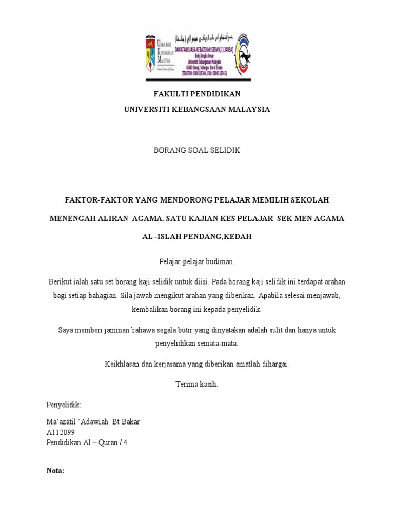 Contoh Borang Soal Selidik Masalah Disiplin Pelajar Cute766