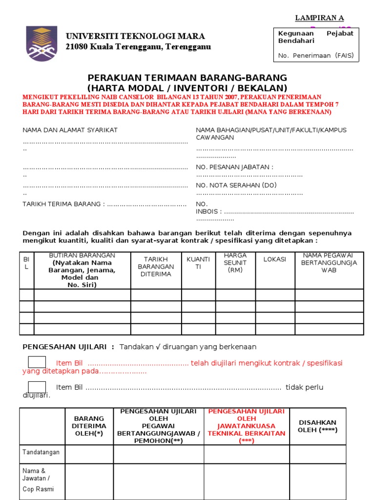 Contoh Borang Terima Barang