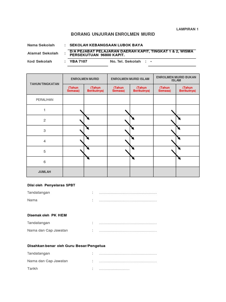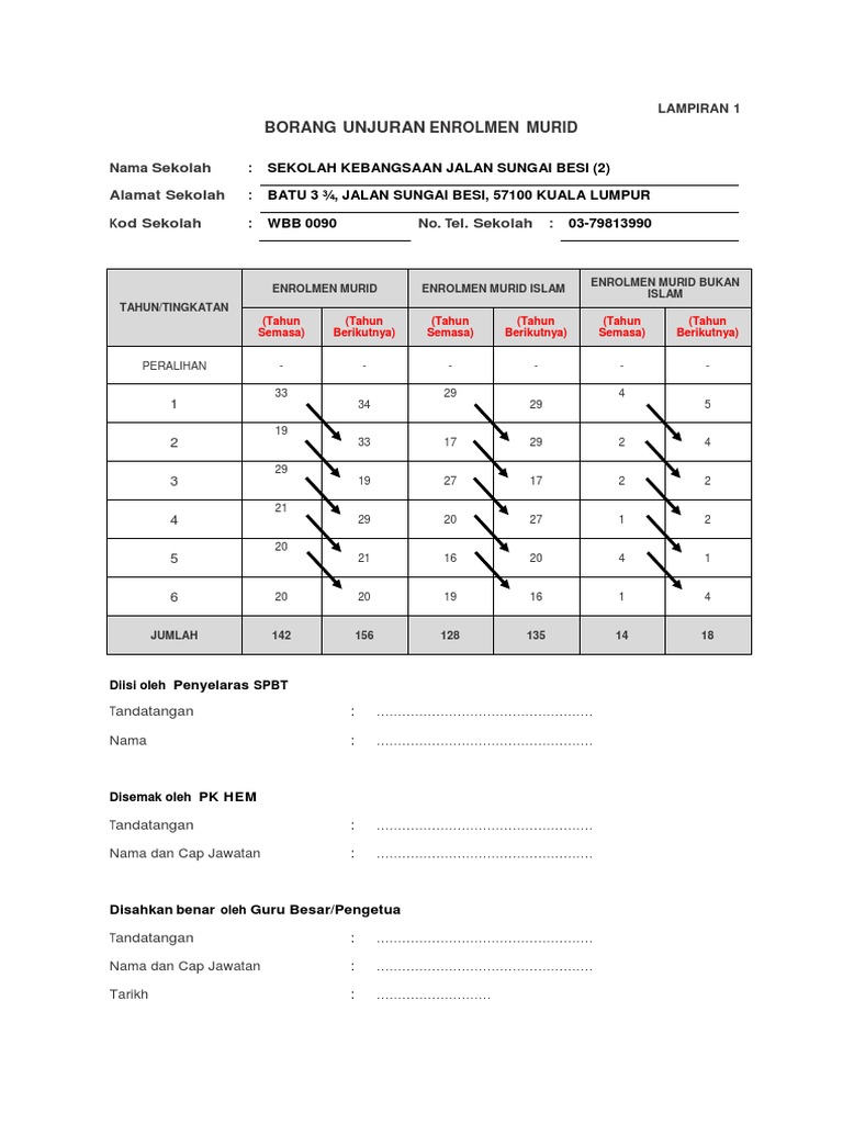 Contoh Format Borang Unjuran Enrolmen Murid Sekolah Rendah