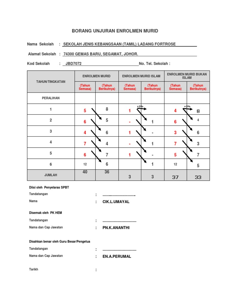 Borang Unjuran Enrolmen Murid Docx