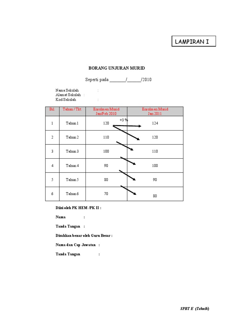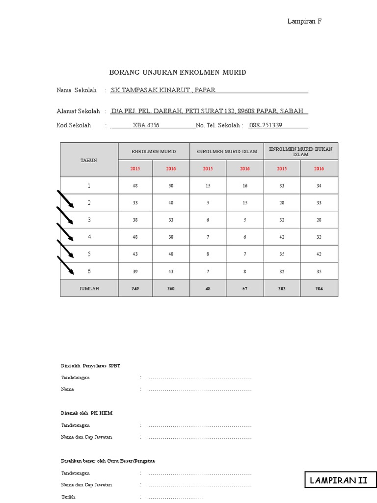 Lampiran F Spbt Borang Unjuran Enrolmen Murid