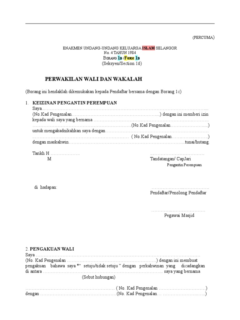 Contoh Borang Wakalah Wali Selangor