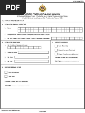 Jpjk1c Pind 1 2011 Permohonan Pembatalan Pendaftaran Kenderaan
