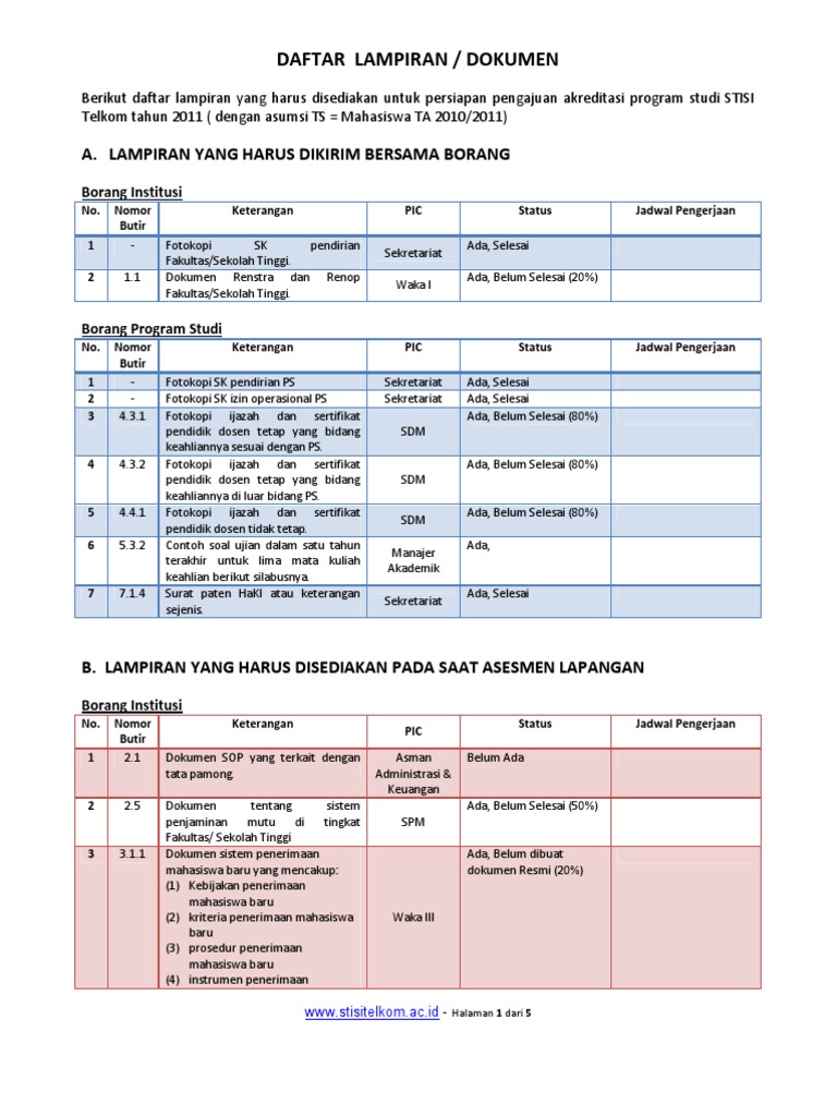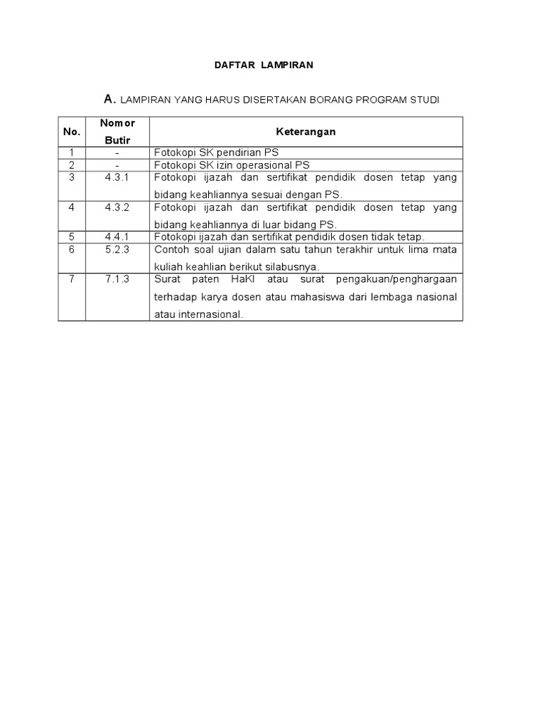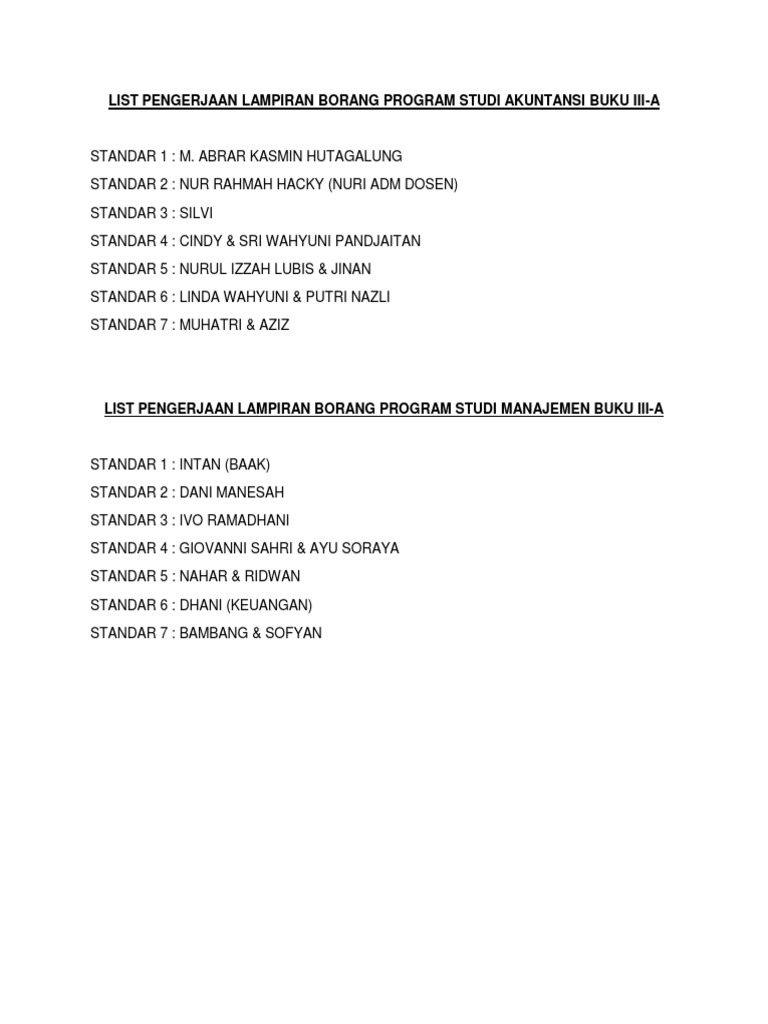List Pengerjaan Lampiran Borang Program Studi Akuntansi Buku Iii Docx