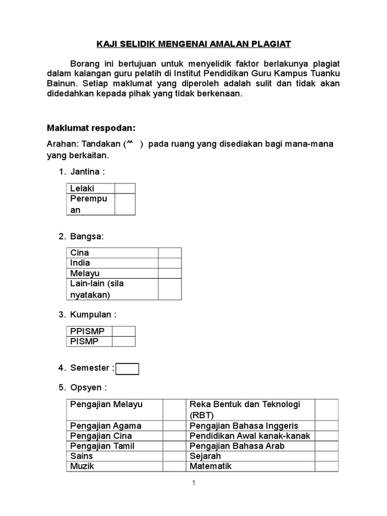 Contoh Borang Soal Selidik Plagiarisme