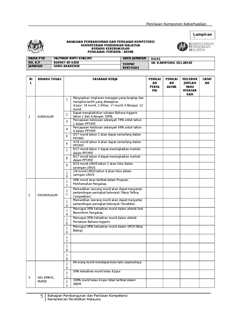 Contoh Borang Keberhasilan Guru Akademik Wall Ppx