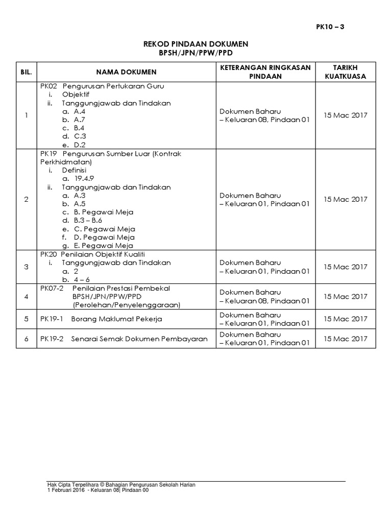 Pk 10 3 Borang Rekod Pindaan Dokumen 2017