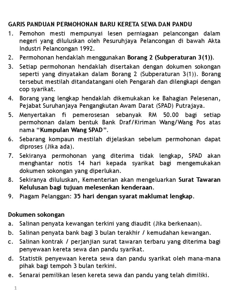 Garis Panduan Permohonan Baru Kereta Sewa Dan Pandu Pdf