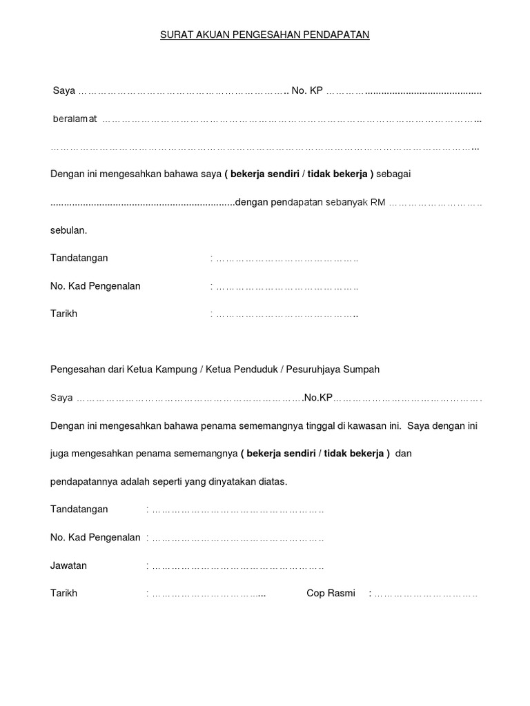 Borang Akuan Pendapatan Keluarga Ibu Bapa Bekerja Sendiri Dan Pdf Document